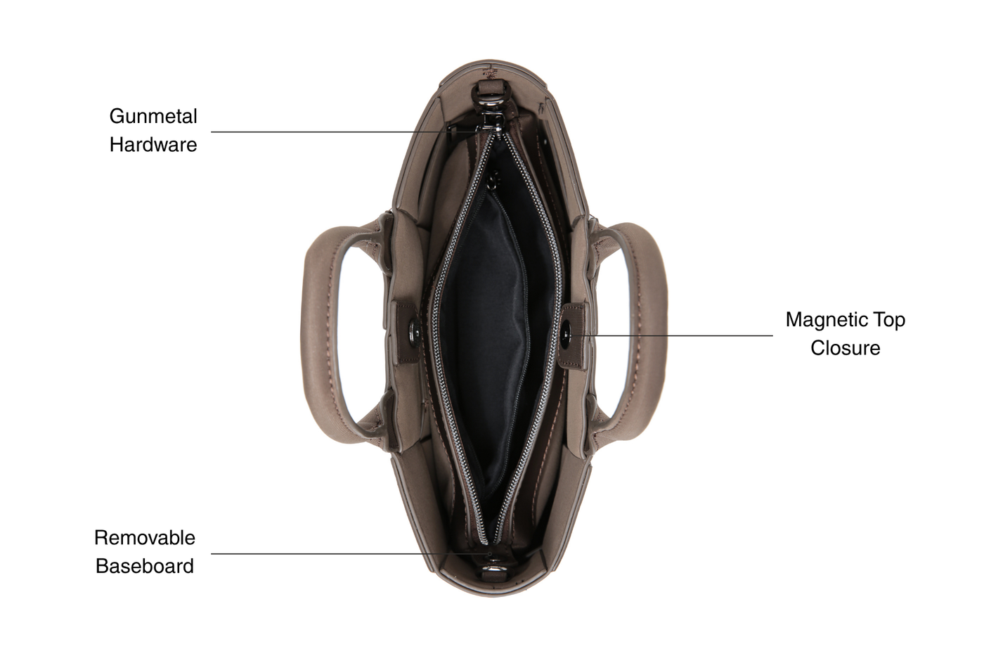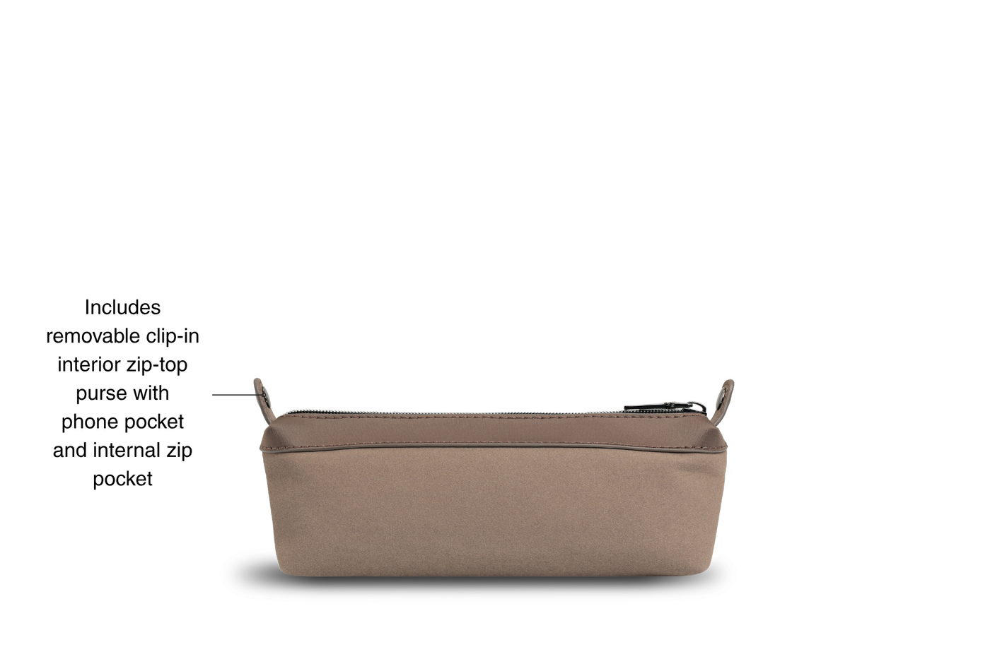 - Includes removable clip-in interior zip-top purse with phone pocket and internal zip pocket